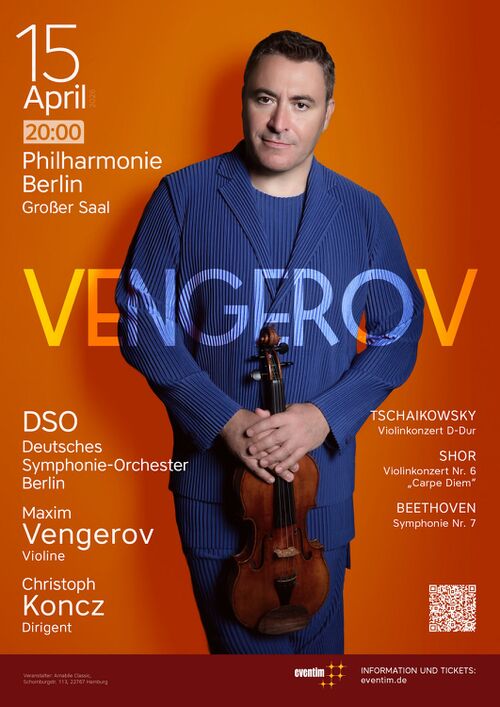 Highlights of recent seasons saw Mr Vengerov opening the season of the Orchestra Filarmonica della Scala with Maestro Chailly, a Residence with Monte Carlo Philharmonic and the Philharmonie in Paris as well as a world wide recital tours.  Highlights of the 22/23 season saw him in an extensive US and Canadian recital tour including Berkeley, Kansas City, New York and Toronto, and an 11 concerts tour in the UK. Other orchestral performances as a soloist include Montreal, Vienna, London, Paris and Taiwan and chamber music concerts with Evgeny Kissin and Stephen Isserliss at Carngie Hall, and in Switzerland with Simon Trpcesky and Stephen Isserliss. He also joined Aspen and Bravo Vale Festival in the States this summer in Recital, Masterclasses and Concerto performance with Fabio Luisi and the Dallas SO and celebrated 40 years on stage at the Royal Albert Hall in a big gala concert in April 2023.  In 2023/24 he will open the Shanghai International Festival with Christoph Eschenbach, will embarque on another world wine Recital tour including America, South America, Europe, Asia and Australia and will perform orchestra concerts in amongst others in Vienna, Paris and Milan.